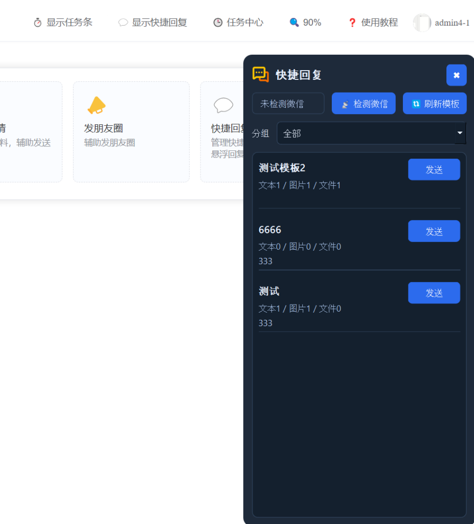 - 功能入口:在系统首页,点击 「💬 快捷回复」 卡片,即可打开模板管理窗口。