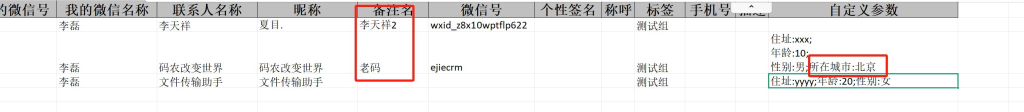 同时,点击该联系人的详情或自定义参数设置,可以发现参数也已成功更新: