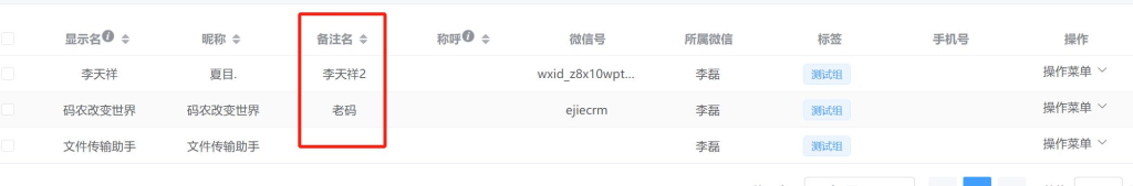 - 将“李天祥”的备注名修改为“李天祥2”,把“码农改变世界”的备注改为“老码”。