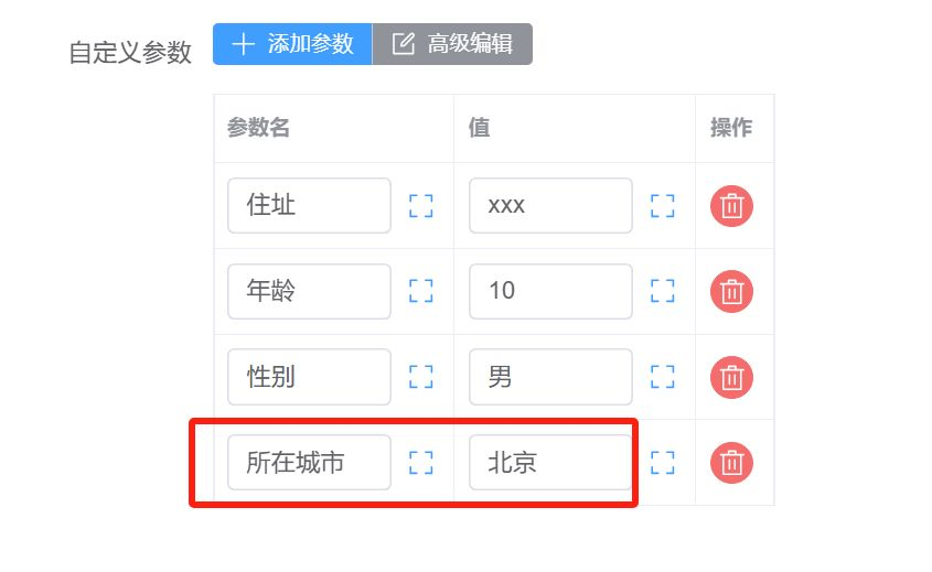 - 为“码农改变世界”增加了自定义参数“所在城市:北京”。
