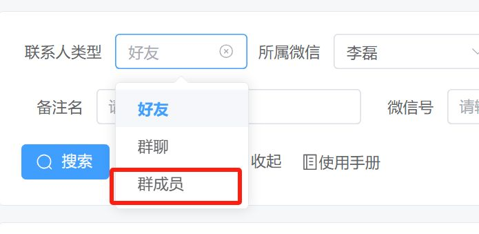- 在筛选条件的”联系人类型”下拉菜单中选择”群成员”