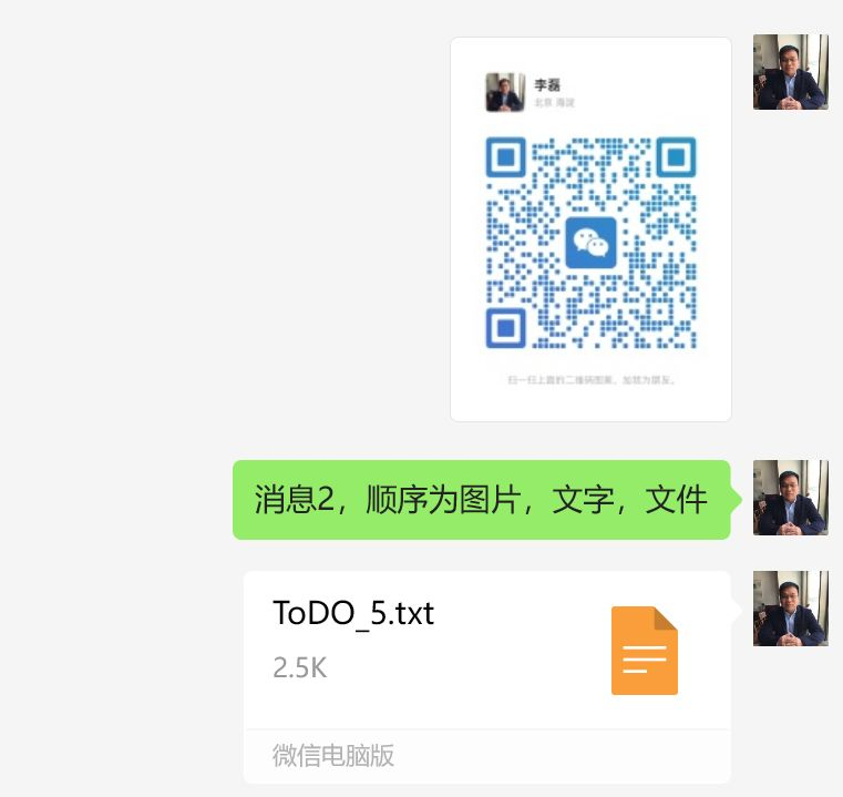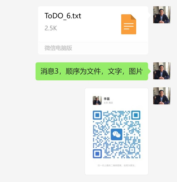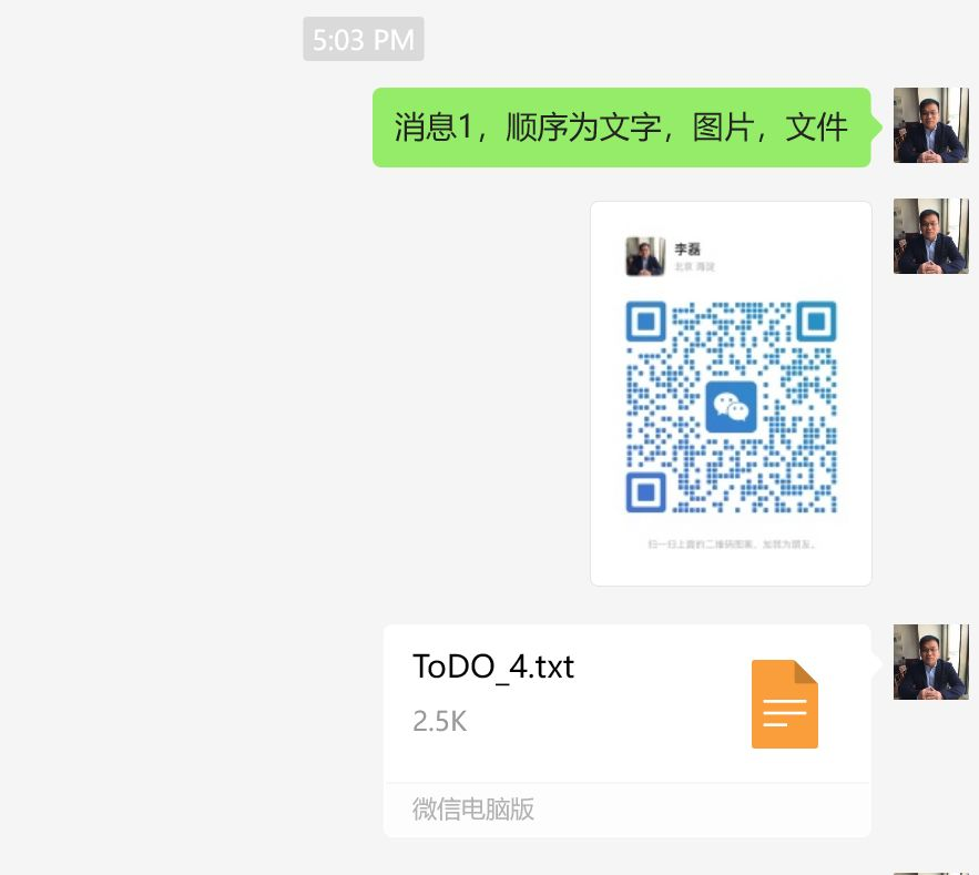 消息3采用”文件→文字→图片”的发送顺序,适合需要接收方先查看文件的场景。